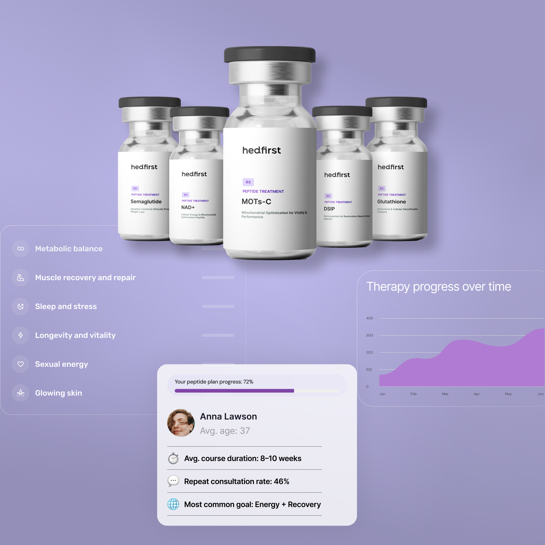 Provider-guided peptides for metabolism, recovery, skin, sleep, and libido.